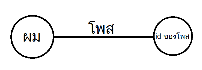 จะได้ข้อมูลมาดังนี้ครับ สังเกตนะครับ ถ้ามี /อยู่หลัง โหนด สิ่งนั้นจะเป็นขอบครับ จากตัวอย่างคือ /posts เป็นขอบของ /me ซึ่งดูจาก ข้อมูลที่ออกมาเป็น JSON  จะสังเกตว่าในช่อง data-> id จะมี id ประมาณว่า 845660548781664_914868131860905 นั่นคือ ไอดีของโพสซึ่งถือว่าเป็นอีกโหนดนะครับ จะได้ความสัมพันธ์ว่า