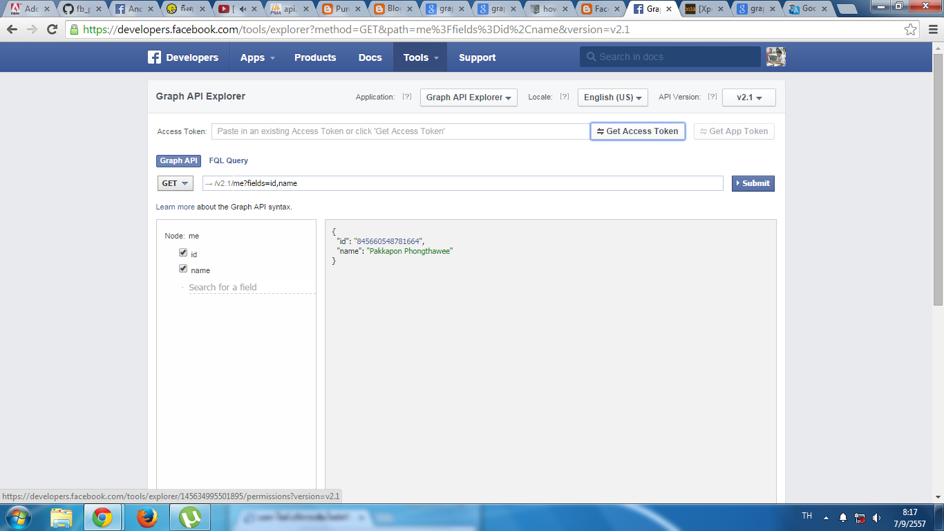 เข้าไปที่ https://developers.facebook.com/tools/explorer เพื่อลองเล่น Graph API กันเลยครับ