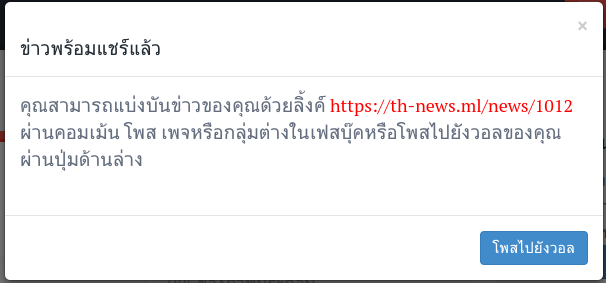คุณสามารถกดปุ่มโพสไปยังวอลหรือนำลิ้งค์ที่ได้ไปโพสไว้ตามคอมเม้น เพจ หรือกลุ่มเพื่อเริ่มปล่อยข่าวปลอมสุดขำขันของคุณ