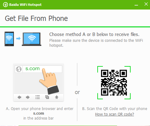 โปรแกรมนี้ยังสามารถดึงไฟล์จากมือถือได้ด้วย โดยเมื่อกด get file from phone แล้วมันจะบอกให้เข้า s.com