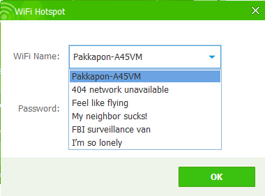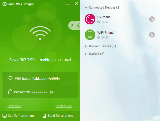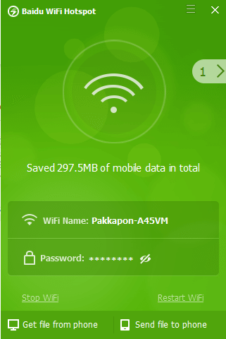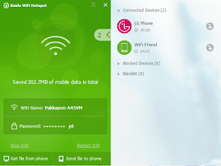 เมื่อเปิดโปรแกรมขึ้นมา เครื่องจะเริ่มทำการปล่อย wifi ทันที สามารถนำมือถือเชื่อมต่อเข้ามาใช้งานได้เลย