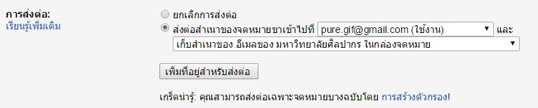 เลือกส่งต่อจดหมายขาเข้าไปที่อีเมลหลักของเรา